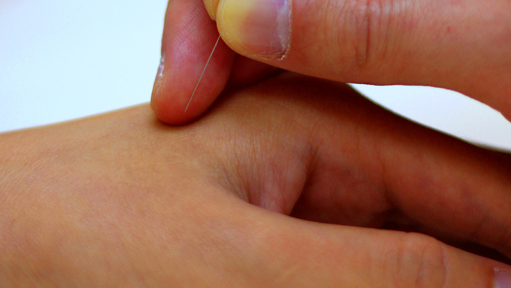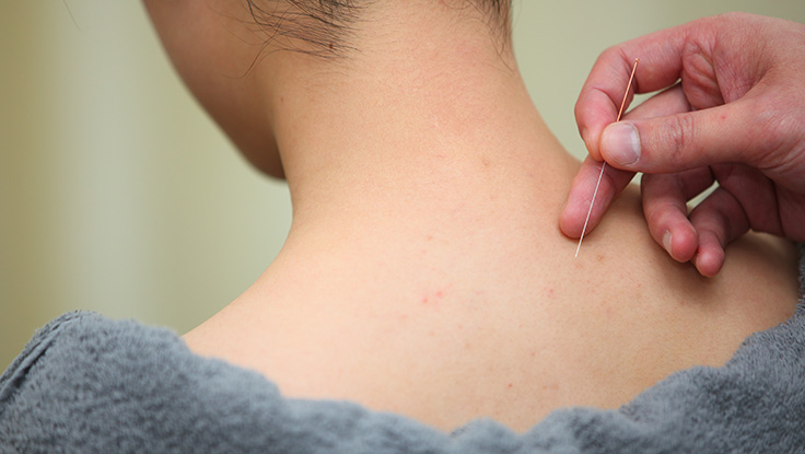 針灸是長久以來中醫其中一種治療痛症的方法。物理治療師融合西方人體解剖學的知識及中醫針灸學的理論,選取適當的穴位,達致止痛及消炎的療效。世界衛生組織肯定針灸的療效,臨床研究指出針灸對炎症、關節痛症及頸背痛都有良好的治療效果。